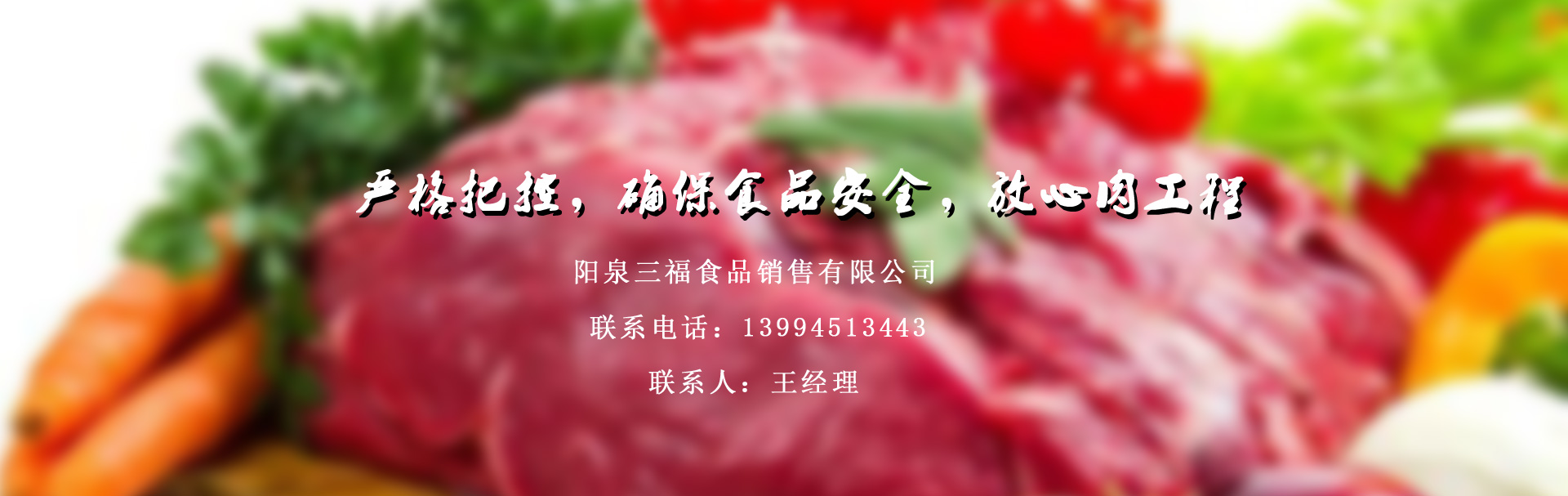 陽(yáng)泉三福食品銷售有限公司成立于二零零六年九月,位于陽(yáng)泉市城區(qū)桃南中路28號(hào),資質(zhì)為一般納稅人,是政府批準(zhǔn)的合法具有外調(diào)肉類的單位之一。在2012年獲得中國(guó)人民銀行頒發(fā)的AAA機(jī)構(gòu)信用代碼證?,F(xiàn)主要提供以下供貨渠道:     1、 冷鮮肉類的批發(fā)     2、 凍貨...